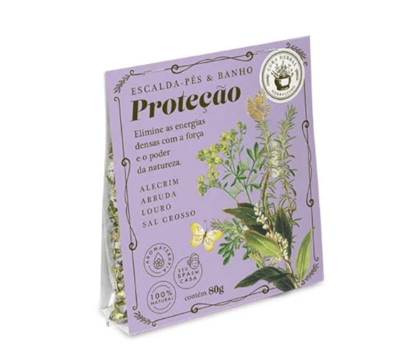 "Descrição: Os banhos de ervas possuem diversos benefícios medicinais que agem tanto no campo físico como espiritual. O Banho de Proteção elimina as energias densas com o poder das folhas e da natureza. Poderoso purificador de ambientes, sendo capaz de neutralizar energias negativas.Composição: Alecrim, Arruda, Louro e Sal Grosso.Modo de uso: ESCALDA-PÉS: Adicione a mistura de ervar e sal na água quente em um ofurô ou bacia e imerja os pés cuidadosamente.BANHO: Adicione a mistura de ervas em um infusor ou então saquinho de filó, imerja-o na banheira ou pendure no chuveiro. Você também pode acrescentar gotas de seu óleo essencial de preferência. "