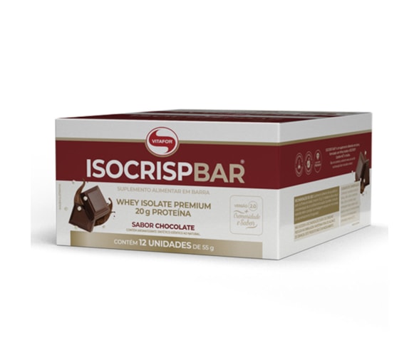 ISOCRISP® BAR é um suplemento alimentar em barra, formulado com Whey Isolate e ISOCRISP® - Contém MCT e Inulina - Rico em proteína, nutriente esse que auxilia na formação dos músculos e ossos - NÃO CONTÉM GLÚTEN - CONTÉM LACTOSE.