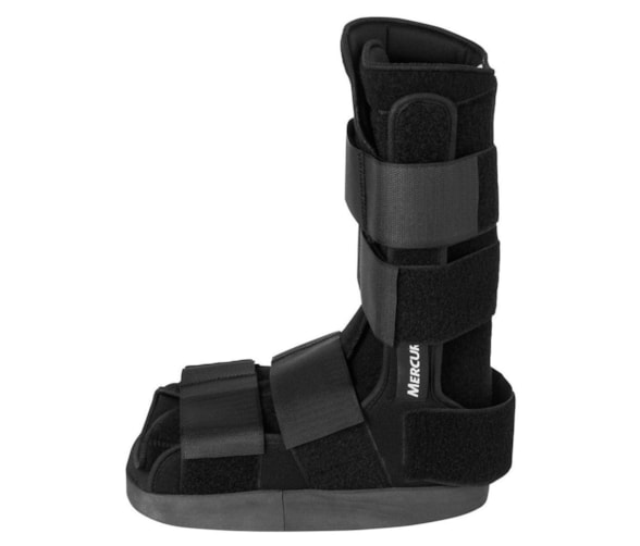 Possui estrutura confeccionada em metal leve e resistente, desenvolvido para adaptar-se ao pé e ao tornozelo, proporcionando maior conforto. Possui talas laterais metálicas para uma imobilização adequada e solado em EVA. A bota é bilateral, ajustável por fechos aderentes e contém revestimento interno que retém menos calor e facilita a transpiração. Acompanham o produto três protetores de espuma para proteger áreas de maior contato.