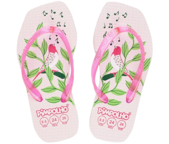 Chinelo Quadradinho Slim Rosa Passarinho Feminino Pimpolho Tam 29/30