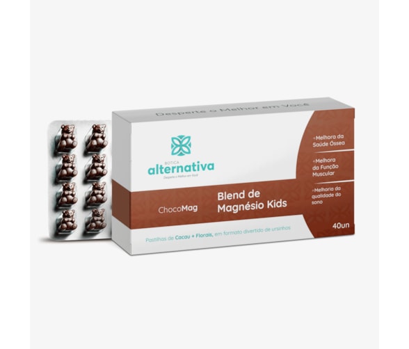 "Experimente o ChocoMag Blend Magnésio Kids, uma deliciosa solução projetada para apoiar o desenvolvimento saudável das crianças de 2 a 12 anos. Com uma fórmula especialmente desenvolvida composta por três formas de magnésio - quelato, treonato e dimalato - este produto tem como objetivo promover benefícios abrangentes para o organismo infantil. O magnésio é crucial para a saúde óssea, auxiliando na formação e manutenção de ossos e dentes fortes ao melhorar a absorção de cálcio. Além disso, ele é essencial para a função muscular adequada, contribuindo para a contração e relaxamento dos músculos, reduzindo cãibras e espasmos. O sistema nervoso também se beneficia do magnésio, pois ele facilita a transmissão de impulsos nervosos, estimulando a saúde mental e cognitiva.O ChocoMag não apenas oferece suporte físico, mas também emocional. A pastilha de cacau, além de seu sabor irresistível, ajuda a aumentar a produção de endorfinas, promovendo um humor positivo e relaxamento mental. A associação com terpenos naturais contribui para reduzir a ansiedade e melhorar a qualidade do sono, primordial para o bem-estar infantil.Cada pastilha contém magnésio quelato (20mg), treonato (20mg) e dimalato (10mg), envoltos em uma base de cacau isenta de açúcar e glúten, adequada para crianças com restrições alimentares, como diabéticos. Armazene na geladeira e consuma dentro do prazo de validade de 3 meses.Advertências: Este produto é para uso oral e não deve ser partido ou mastigado. Não utilize sem orientação médica ou farmacêutica, principalmente em caso de hipersensibilidade ao magnésio. Ele deve ser mantido fora do alcance de crianças. Consulte um profissional de saúde se houver persistência dos sintomas.A escolha certa para cuidadores que buscam saúde com sabor para os pequenos. Aproveite nossos descontos progressivos e faça parte deste cuidado inovador."
