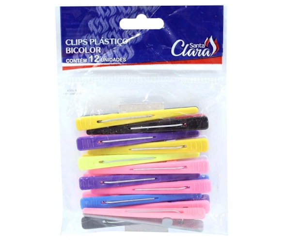 Os clips plástico colorido santa clara para cabelo são utilizados para prender os cabelos durante a realização de penteados, corte de cabelo, relaxamento, coloração, descoloração etc.