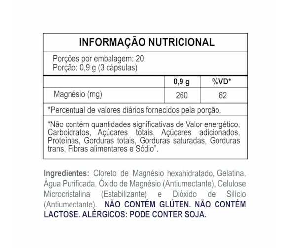 O suplemento alimentar de Cloreto de Magnésio P.A. da Nature Healthy é um mineral que auxilia na melhora do funcionamento muscular, no metabolismo energético e na formação de ossos e dentes.