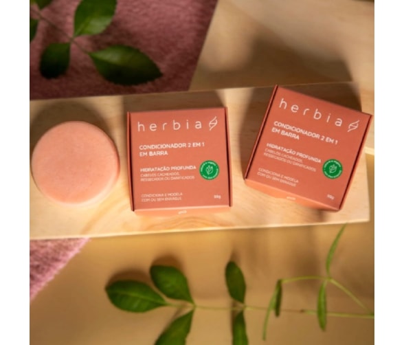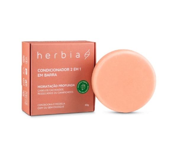 O Condicionador em Barra Natural 2 em 1 da Herbia é indicado para cabelos cabelos cacheados, ressecados e danificados.