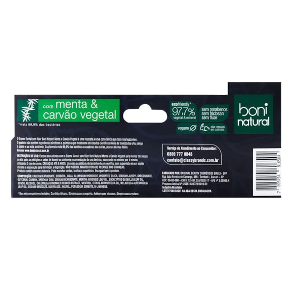 Preto no Branco!!! Sem a utilização de corantes, o Creme Dental Carvão Ativado Branqueado com Menta & Carvão Vegetal da Boni é a melhor opção no mercado para assepsia e cuidados com sua higiene bucal.