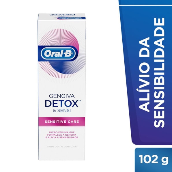 O novo creme dental Oral-B Gengiva Detox Sensitive usa o ingrediente ativo, fluoreto de estanho estabilizado, que ajuda a fortalecer a gengiva e aliviar a sensibilidade - As pastas Detox, contém uma microespuma que limpa profundamente entre dentes e gengiva e são capazes de alcançar lugares de difícil acesso, deixando os dentes limpos, e fortes e o hálito fresco.