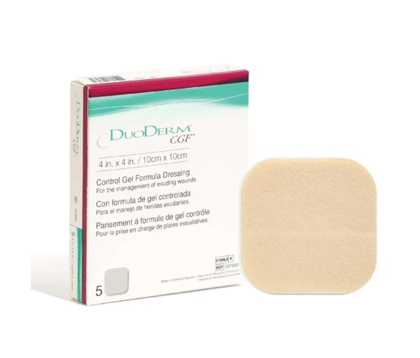 O DuoDERM CGF é um curativo adesivo estéril, hidrocolóide, com fórmula de controle de gel.