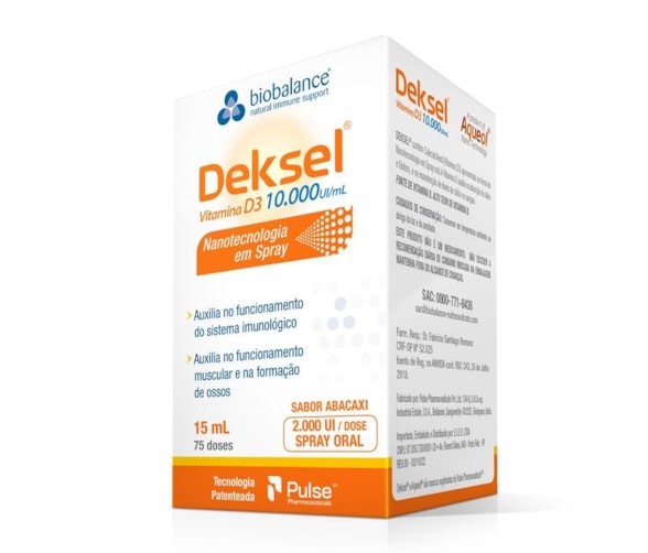 Deksel é um produto da categoria de naturais, comercializado em spray, formulado com 10.000UI/ml de colecalciferol (vitamina D), fabricado pelo laboratório Biobalance. Desenvolvido com nanotecnologia, possui absorção potencializada em tripla camada de proteção, sendo utilizado no tratamento auxiliar da reposição da vitamina D no organismo.