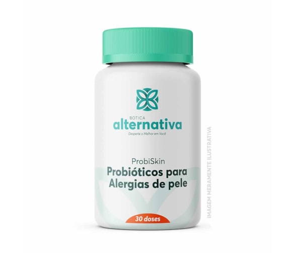 "ProbiSkin é um suplemento probiótico desenvolvido para auxiliar no tratamento de alergias de pele, psoríase e eczemas. Este produto contém uma combinação precisa de Lactobacilos que promove o equilíbrio da flora intestinal, essencial para a modulação da saúde da pele. Estes microrganismos atuam fortalecendo o sistema imunológico, fortalecendo a barreira cutânea e reduzindo a permeabilidade intestinal, o que pode melhorar significativamente a saúde da pele. Com 1,5 bilhões de UFC de Lactobacillus salivarius, 1 bilhão de UFC de Lactobacillus rhamnosus, 1 bilhão de UFC de Lactobacillus plantarum e 1 bilhão de UFC de Bifidobacterium breve, ProbiSkin oferece uma solução eficaz para distúrbios dermatológicos e intestinais. O uso recomendado é de uma cápsula ao dia, proporcionando um tratamento de 30 dias para manutenção da flora intestinal e melhorias na condição da pele. Com validade de 4 meses, este produto deve ser armazenado em local fresco e ventilado, especialmente em temperaturas mais quentes, onde o armazenamento em geladeira é recomendado. Embora os probióticos ofereçam diversos benefícios, é importante lembrar que os efeitos podem variar entre indivíduos. Caso os sintomas persistam, recomenda-se consulta a um médico ou farmacêutico. Além disso, ProbiSkin é aconselhado somente para adultos e adolescentes, e seu uso por grávidas ou lactantes deve ser avaliado por profissionais de saúde. A Botica Alternativa destaca que o uso correto do produto é crucial para alcançar os resultados desejados e que a interrupção do uso deve ser considerada em caso de hipersensibilidade à fórmula. ProbiSkin é livre de glúten e lactose, tornando-se uma opção versátil e segura no apoio à sua saúde cutânea e intestinal."