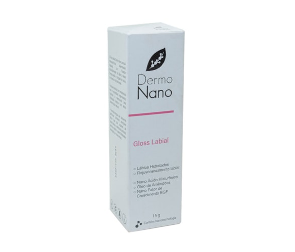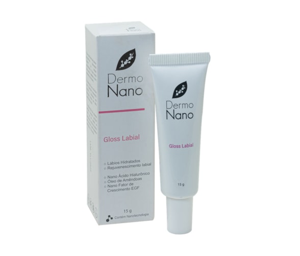 Dermonano Gloss Labial 15g - Hidratação labial - Rejuvenescimento labial - Nano ácido hialurônico - Óleo de Amêndoas - Nano fator de crescimento EGF.