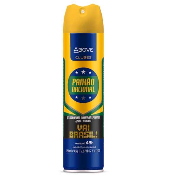 Desodorante Antitranspirante Above Aero Clubes Brasil 90g - Para você que vai torcer para o seu time do coração, a linha Above Clubes traz antitranspirantes com os principais times de futebol do Brasil para você não precisar suar a camisa - Todos com uma fragrância amadeirada de mandacaru, oferecem proteção de até 48 horas com alta performance e frescor imediato.