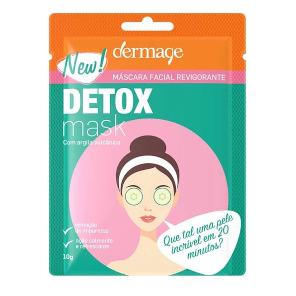 Detox Mask – máscara facial revitalizante, revigorante, possui ação calmante e refrescante, remove as impurezas acumuladas da pele, proporcionando uma limpeza profunda. Fórmula cremosa, com argila vulcânica na composição. Possui ainda extrato de hamamelis, menta e calêndula que promove ação calmante e refrescante. As Máscaras Faciais Dermage podem ser utilizadas individualmente ou em associação com qualquer tratamento para proporcionar maior benefício à pele.