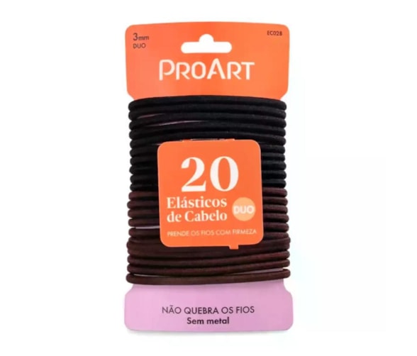 Elástico De Cabelo ProArt 3mm 20 Unidades Duo Ref:EC02B Além de não conterem parte metálica, os elásticos de cabelo da ProArt são feitos a partir de um material 5 vezes mais elástico do que o encontrado em produtos concorrentes. São ideais para prender os fios com firmeza e sem quebras, proporcionando um uso confortável ao longo do dia. A melhor opção para prender os fios no dia a dia ou para criar aquele penteado incrível que vai durar o dia todo!