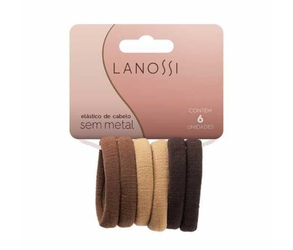 O Elástico de Cabelo sem Metal Cappuccino Lanossi vem em 6 unidades com tons de marrom para você poder criar e ousar nos penteados com delicadeza e sustentação. Pode fazer parte do look, ou pode combinar com a sua cor de cabelo, dependendo da sua tonalidade. Feito em nylon e elastano, cuida dos fios sem agredir.