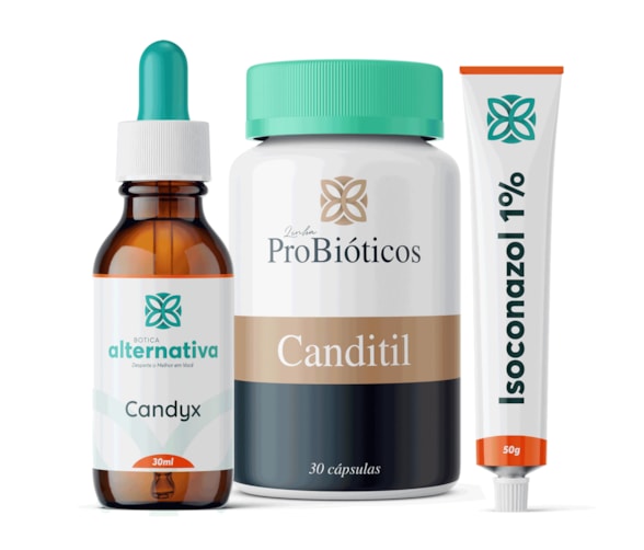 "Conheça nosso Kit Candidíase Masculina, uma solução completa e eficaz para o tratamento e prevenção da candidíase e suas manifestações em homens. Com uma formulação exclusiva, este kit foi especialmente desenvolvido para combater infecções fúngicas, promovendo saúde e bem-estar.Composição do Kit:1. Candyx - Homeopatia para Candidíase (30ml): Um homeopático formulado para estabilizar o equilíbrio físico e mental, ajudando a evitar descontrole e recorrências associadas à candidíase. Posologia: Tomar 5 gotas 3 vezes ao dia, ou 5 gotas 5 vezes ao dia em casos de infecção ativa.2. Canditil - Probióticos para Candidíase (30 cápsulas): Este suplemento probiótico restaura o equilíbrio da flora intestinal, fortalecendo o sistema imunológico e inibindo o crescimento inadequado do fungo Candida. Posologia: Ingerir 1 cápsula antes de dormir.3. Pomada com Isoconazol 1% (50g): Eficaz contra micoses causadas por Candida, esta pomada ajuda no tratamento de infecções superficiais da pele. Aplicar na região afetada uma vez ao dia.Validade dos produtos: Candyx: 3 meses; Canditil e Pomada: 4 meses.Além de oferecer tratamento, este kit é um preventivo eficaz, garantindo a manutenção do equilíbrio necessário para evitar o reaparecimento da infecção. O uso conjunto dos produtos propicia resultados visíveis já nos primeiros 15 dias, desde que utilizados corretamente conforme a posologia indicada.Importantes cuidados incluem evitar uso após a validade, manter longe do alcance de crianças e animais, e consultar um médico em caso de persistência dos sintomas. Não é recomendado o uso durante a gestação.Invista na sua saúde e bem-estar com o Kit Candidíase Masculina, especialmente formulado para garantir o equilíbrio e a saúde da flora genital e intestinal masculina."