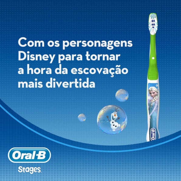 Escova Dental Infantil Oral-B Stages 4 Frozen Suave/Macia +8 - Para pré-adolescentes, com dentição de leite e dentes permanentes - Indicada para crianças a partir de 8 anos.