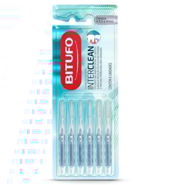 Escova Interdental Bitufo Interclean é eficiente na limpeza entre os dentes, espaços entre braquetes, pontes e próteses fixas, onde a escova convencional não chega.