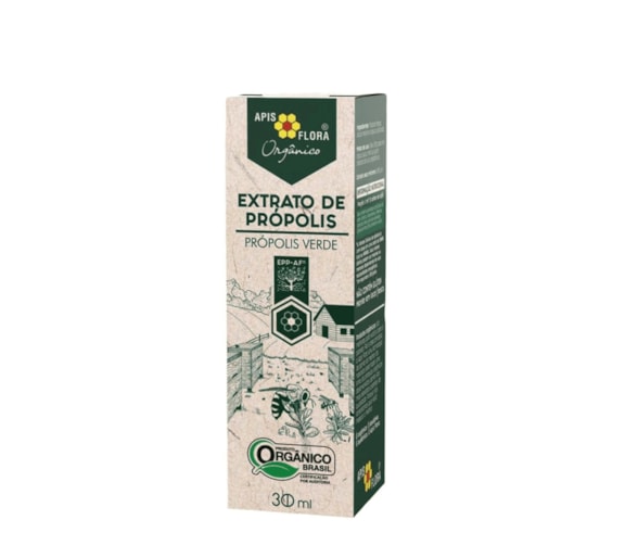 "O EXTRATO DE PRÓPOLIS VERDE APIS FLORA é produzido com própolis verde da mais alta qualidade. Essa própolis especial é obtida a partir de uma planta nativa do Brasil, a Baccharis dracunculifolia (Vassourinha ou Alecrim do Campo). Trata-se de um produto amplamente estudado por pesquisadores no Brasil e no exterior, principalmente no Japão. Ela possui, além dos tradicionais componentes da própolis, alta quantidade de artepillin C, substância a qual pesquisas japonesas atribuíram grande atividade antitumoral.Esse produto possui mínimo de 11% p/v de própolis."