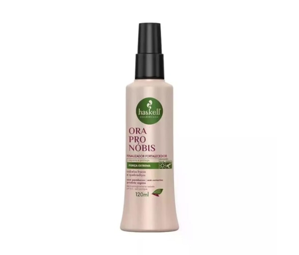 O Finalizador Haskell - Ora-pro-nóbis desembaraça e repara os danos causados por processos químicos, enquanto proporciona cabelos mais fortes e nutridos. Sua ação fortalece a fibra capilar, diminuindo a quebra, além de reduzir a formação de pontas duplas e aumentar a resistência do fio. Sua fórmula exclusiva conta com o Extrato de Ora-pro-nóbis, planta rica em aminoácidos essenciais, além de vitaminas que nutrem profundamente os fios e alta concentração de proteína. Esse ativo retém a água dos fios, garantindo hidratação aos cabelos. Cabelos extremamente fortes e sedosos, com um delicioso aroma cítrico, amadeirado, floral, musk.