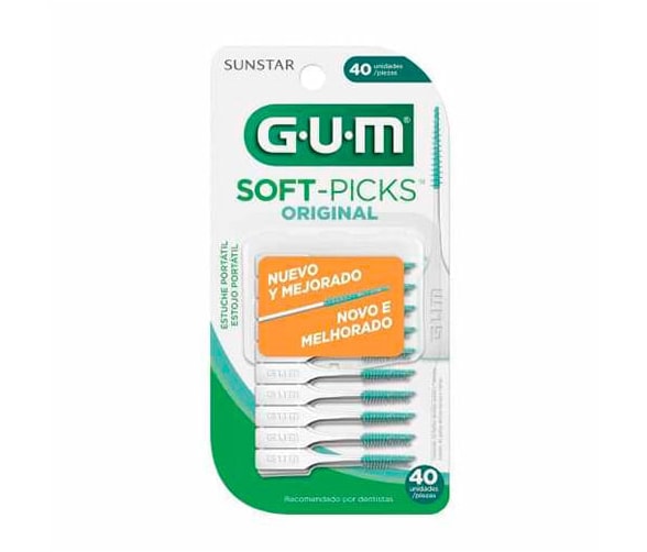 O Palito Interdental G.U.M. Soft Picks Original para uso pessoal e ortodôntico em implantes, pontes e coroas. Funcionando como uma mini escova com pontas em silicone macio e formato curvo , se adaptando melhor à cada gengiva, proporcionando assim mais conforto e uma limpeza completa, profunda e necessária entre os dentes.
