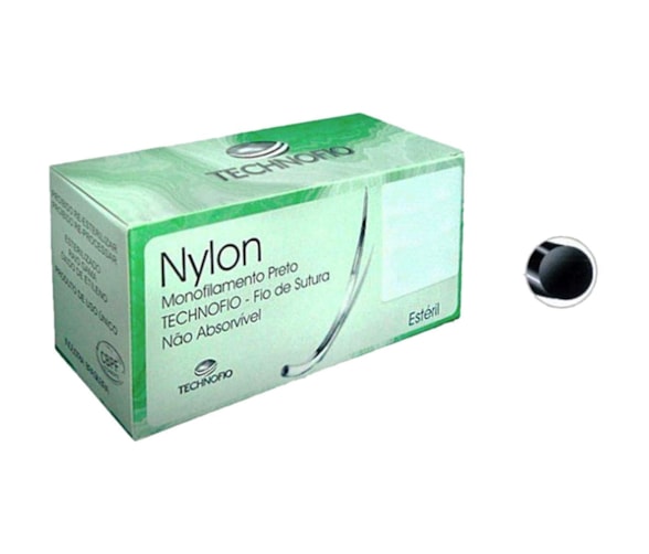 A sutura de Nylon Monofilamento Preto Technofio ¿ Fio de Sutura é do tipo não absorvível, estéril e composta por um fio de poliamida de cadeia alifática longa de polímeros de nylon.