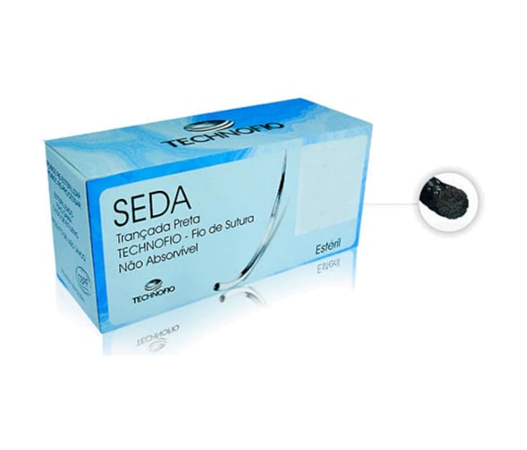 Fio de sutura composto por uma proteína orgânica animal chamada fibroína.
