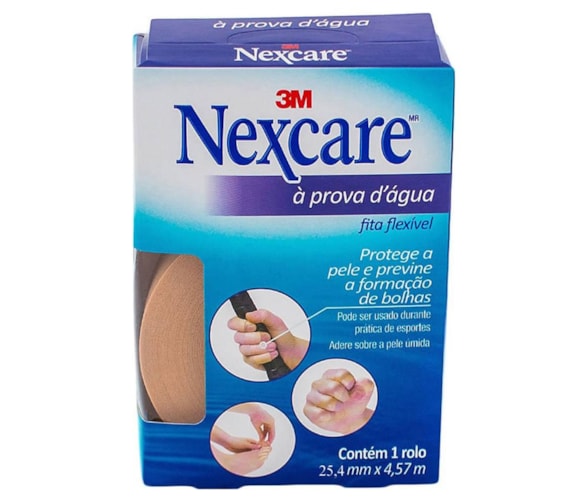 Proteção versátil para todas as suas atividades, a Fita Flexível à Prova DÁgua Nexcare® é a combinação perfeita entre alta tecnologia e conforto superior. Além de acompanhar os movimentos do corpo, esta inovação da 3M protege a pele e previne a formação de bolhas nos pés, nas mãos e em outras partes do corpo. Proteção versátil para todas as suas atividades, a Fita Flexível à Prova DÁgua Nexcare® tem o seu material é feito por uma espuma que amortece e protege contra o atrito, e seu adesivo garante forte adesão e permanece sobre a pele úmida durante a prática de exercícios. É um esparadrapo Nexcare® recomendado para proteção durante diversas atividades, como musculação, cross fit, vôlei, basquete, ballet, tênis, artes marciais, entre outros. Como ela é à prova d’água, deixando a pele transpirar, também pode ser utilizada durante o banho ou em atividades na água, como natação. A Fita Flexível à Prova DÁgua Nexcare® é flexível, acompanhando os movimentos do corpo sem descolar, e adere à pele úmida, permanecendo no lugar durante a prática de exercícios, no banho ou dentro d’água. É uma fita extremamente versátil, protegendo a pele de bolhas em regiões de atrito. Além disso, ela corta fácil, é confortável e discreta na pele e possui fácil aplicação e remoção, sem deixar resíduos. Trata-se de um produto hipoalergênico e dermatologicamente testado.