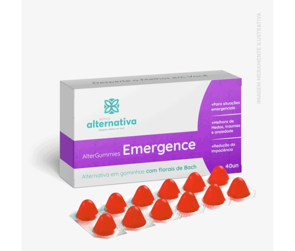 "Descubra a solução inovadora para o equilíbrio emocional com AlterGummies - Emergence com Rescue, disponíveis em sabor Morango. Desenvolvidas especialmente para situações emergenciais que causam abalo emocional, essas gominhas são perfeitas para quem enfrenta estresse, ansiedade, medo e desafios emocionais. Contendo a fórmula comprovada do Floral de Bach Rescue Remedy, cada goma é enriquecida com as essências florais Star of Bethlehem, Rock Rose, Clematis, Impatiens e Cherry Plum. Juntas, essas essências promovem a serenidade, reduzem a irritabilidade e aumentam a paciência, tanto em crianças como em adultos. A revolucionária forma de goma não só torna o tratamento mais agradável, mas também facilita a adesão. Com recomendação de uso para crianças a partir de 2 anos, até idosos, gestantes e diabéticos, estas gomas são isentas de glúten, lactose e açúcares, garantindo inclusão e segurança. Feitas com base goma e edulcorantes de Morango, além de corantes alimentícios à base de água, estas gominhas são uma alternativa deliciosa e prática para momentos de necessidade emocional intensa. A duração do tratamento é de aproximadamente 20 dias, com ingestão sugerida de duas gominhas por dia, suficientes para começar a perceber os efeitos em até 15 dias. Caso os sintomas persistam, é recomendável a consulta com um profissional de saúde. As gominhas têm validade de 4 meses, desde que armazenadas de forma adequada. Com mais de 15 anos de experiência, a Dra. Adriana Wrublewski Machado Silva, Farmacêutica Homeopata e especialista em Terapia Floral Bach, assegura que promover saúde com dedicação é sua maior missão. A AlterGummies oferece não só um produto, mas um compromisso com a saúde emocional, permitindo que você encare situações difíceis com mais calma e resiliência."