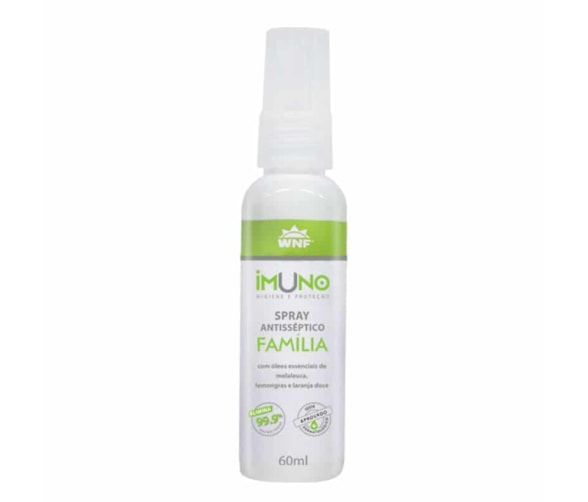 "Breve DescriçãoProduto feito à base de álcool com uma sinergia dos melhores óleos essenciais para proteção e limpeza. 100% natural e vegano.Validade2 AnosPosologiaAtua com o jato spray sobre a pele e superfícies inertes, isso significa que poderá ser aplicado na higiene das mãos e braços, utensílios profissionais e domésticos, tecidos, armários, gavetas, cubetas, pentes, escovas, máscaras, equipamentos de proteção, aparelhos esportivos, entre outros.DescriçãoIMUNO Spray Antisséptico Família foi desenvolvido para higiene, proteção e purificação das pessoas através de matérias primas provenientes da natureza.Contém Óleo essencial de melaleuca, lemongras e laranja doce.Advertências e Principais Cuidados - USO EXTERNO - Não ingerir, evitar contato com os olhos e mucosas. - Manter fora do alcance de crianças; - Em contato com os olhos e boca lave com água em abundancia; - Em caso de irritação suspende o uso; - Conservar em local fresco, arejado, e ao abrigo da luz solar. "