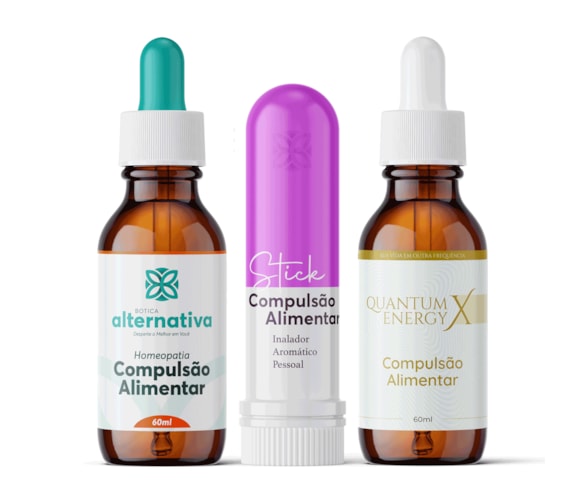 "Principal objetivo - Reduzir a ansiedade que desencadeia comportamentos de compulsão Alimentar.Produtos: - Homeopatia para Compulsão Alimentar 60mL - Floral para Compulsão Alimentar + Frequencial 60mL - Stick Compulsão AlimentarValidade: - Homeopatia: 6 meses - Floral: 3 meses - Stick: 6 mesesPosologia: - Homeopatia: Tomar 5 gotas 5x ao dia, sublingual. - Floral: Tomar 6 gotas 4x ao dia, sublingual. - Stick: Inale o aroma quantas vezes forem necessárias.Descrição:É muito comum as pessoas relacionarem a comida uma solução para seus problemas emocionais. Ao menor sinal de preocupação recorrendo a algum alimento para aliviar a tensão. Ou então, durante uma dieta, o excesso de fome pode atrapalhar o processo de emagrecimento.O kit contém floral e homeopatia que auxiliam a redução da ansiedade que gera impulso de comer sem necessidade, para auxiliar o desenvolvimento de uma relação mais saudável com a alimentação.Aqui no Botica estamos sempre inovando para o bem-estar dos nossos clientes, por isso adquirimos uma máquina capaz de capturar e transferir o campo informacional de qualquer amostra, por meio de ressonância vibratória energética (partindo de teorias da física quântica).Isso nos permite adicionar aos medicamentos frequências que ajudam com o emocional e físico, sem precisar de princípio ativo medicamentoso ao agir via transferência energética, para somar e potencializar medicamentos. Neste Kit, a fórmula da terapia floral contém frequências para auxiliar a reduzir a compulsão alimentar Composição: - Homeopatia: Homeopatia: China Officinalis CH3 ; Aloe Socotrina CH3; Agentum Nitricum CH6; Phosphorus CH3 ; Kalium Carbonicum CH5 Álcool qsp - Floral: Ambrosia, Levitate, Fuchsia, Cidreira, Billy Goat Plum, Sorgo + Frequencial para compulsão alimentar – Sem Álcool. - Stick: Óleo Essencial de Grapefruit, Óleo Essencial de Lavanda. "