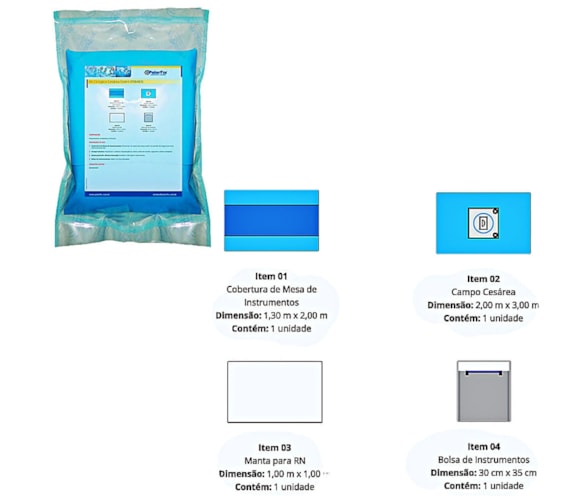 Kit Cirúrgico composto do tradicional SMS, garantindo efetivamente proteção entre o paciente e o profissional da saúde, além de atuar como barreira bacteriológica, evitando transferências cruzadas de agentes infecciosos durante os procedimentos cirúrgicos.