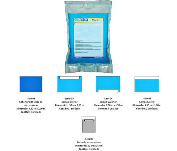 Kit Cirúrgico garantindo efetivamente proteção entre o paciente e o profissional da saúde, além de atuar como barreira bacteriológica, evitando transferências cruzadas de agentes infecciosos durante os procedimentos cirúrgicos.