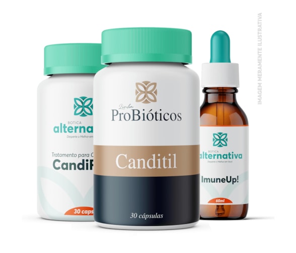 "Breve DescriçãoKit de sinergias potente para o tratamento contra a candidíase recorrente.Principal ObjetivoTratamento 100% naturalControle do hiperdesenvolvimento do Fungo CândidaControle da flora Probióticos CantitilExcelente para melhorar a imunidade prevenir as infecçõesValidadeCapsulas Candifree - 3 mesesCapsulas Canditil- 4 mesesImuneUP- Homeopatia para aumento de Imunidade em adultos 60mL 3 meses.PosologiaCapsulas Candifree - 30 caps Inserir uma cápsula no canal vaginal antes de dormir.Capsulas Canditil- 30 caps Tomar 1 cápsula antes de dormir.ImuneUP 60 mL - Tomar 10 gotas 2x ao dia."