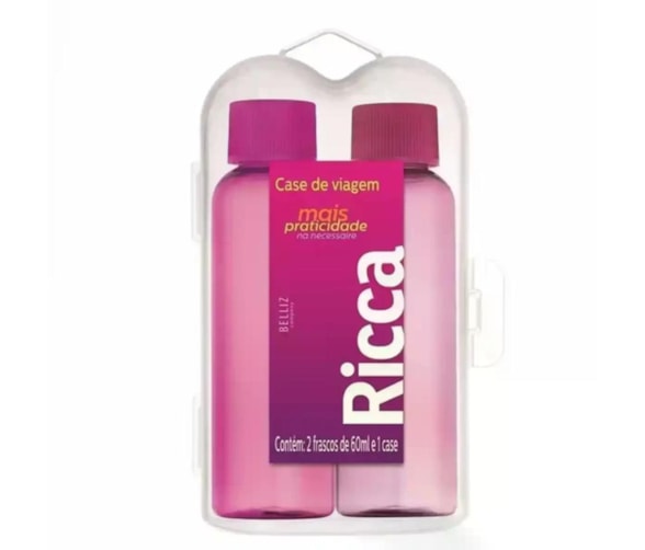 Kit De Viagem Case Com Dois Frascos Colors Ricca Cod. 3320 Desenvolvido especialmente para viagens, o Kit de Viagem Case Ricca possui dois frascos e um embalagem perfeita para manter a organização em sua mala sem ocupar muito espaço. Ideal para viagens ou até mesmo carregar em bolsas de academia, ou saídas rápidas. Características: Kit de viagem contém 1 case e 2 frascos de 60ml para shampoo, condicionador e cremes capilares. Diferencial: Ideal para bagagem de bordo