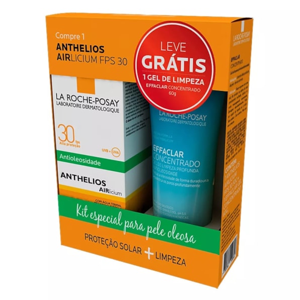 Este kit é especial para pelo oleosa. Limpe profudamente sua pele com Effaclar e proteja de forma duradoura com Anthelios AIRlicium