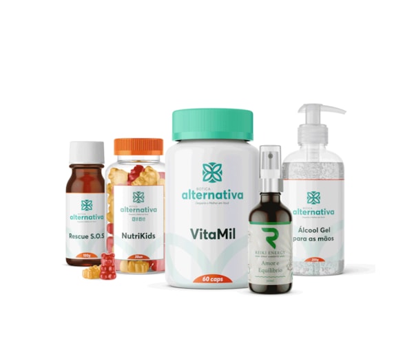 "Farmacinha Alternativa Proteção Familiar: um kit essencial para o cuidado integral da sua família, proporcionando proteção, equilíbrio e reforço imunológico em um único pacote. Este kit multifuncional combina cinco produtos especialmente formulados para adultos e crianças, garantindo uma abordagem abrangente para a saúde e bem-estar.1. **VitaMil Multivitamínico & Minerais**: Oferece 60 cápsulas, suficiente para um mês de suporte nutricional, fortalecendo o sistema imunológico e preenchendo lacunas dietéticas dos adultos. Posologia: uma cápsula diária.2. **NutriKids Multivitamínico Infantil com Rescue**: Apoia o crescimento saudável das crianças com 30 gominhas enriquecidas com nutrientes essenciais. Posologia: uma goma por dia, conservar em geladeira após abrir.3. **Reiki Energy Spray - Amor e Equilíbrio**: Este spray de ambientação de 30ml promove tranquilidade e equilíbrio mental, especialmente útil em situações de emergência emocional. Posologia: borrifar 1 a 2 vezes.4. **Rescue SOS Glóbulos**: Com aproximadamente 1200 glóbulos em cada frasco de 100g, este suplemento floral é ideal para reduzir a irritabilidade e promover a calma. Posologia: tomar 8 glóbulos duas vezes ao dia.5. **Álcool em Gel 70%**: Com 250g, este antisséptico essencial é perfeito para higienização das mãos, protegendo contra patógenos externos. Aplicar com fricção até secagem completa.Todos os componentes do kit são livres de glúten e lactose, possuem validade adequada, e foram desenvolvidos com a expertise da Botica Alternativa. Contraindicações incluem uso por menores de 18 anos sem orientação médica e restrições para gestantes e lactantes sem supervisão profissional. Para melhores resultados, seguir rigorosamente as instruções de uso. A Farmacinha Alternativa Proteção Familiar é mais do que um suplemento; é um aliado essencial para manter o ciclo da saúde familiar em plena eficiência."