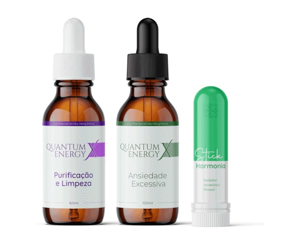 "O Kit Paz e Equilíbrio da Quantum Energy X é uma inovadora combinação de fitoterapia, florais, aromaterapia e medicina vibracional, ideal para adultos e crianças acima de 10 anos. Desenvolvido com a tecnologia de medicamentos quânticos, este kit oferece frequências vibracionais que atuam no equilíbrio mental e emocional sem a necessidade de princípios ativos convencionalmente encontrados em medicamentos.O Quantum Energy X - Ansiedade Excessiva de 100ml é formulado com tinturas de Passiflora, Rosa Branca, Crataegus e Melissa, conhecidas por suas propriedades sedativas e ansiolíticas, promovendo relaxamento físico e mental, essencial para quem sofre de ansiedade e insônia. Já o Harmony - Purificação e Limpeza de 60ml é um floral especialmente desenvolvido para harmonizar emoções, promovendo o equilíbrio dos 7 chakras com frequências vibracionais que elevam a energia vital.O Stick Harmonia, inalador aromático pessoal, utiliza uma sinergia de óleos essenciais como Ylang Ylang, Manjerona, Laranja Doce e Grapefruit, que ajudam a equilibrar o campo emocional e energético, promovendo uma sensação de calma, alegria e tranquilidade. A ação relaxante desses óleos é eficaz em condições de estresse, insônia, e emoções negativas como raiva e frustração.Recomendamos seguir rigorosamente a posologia para obter resultados eficazes. A diluição de 15 gotas do Quantum Energy X em água ou o uso de 7 gotas do Harmony por dia permite experimentar os efeitos benéficos rapidamente, enquanto a inalação do Stick Harmonia proporciona alívio imediato conforme necessário.Este produto deve ser armazenado adequadamente, fora do alcance de crianças, e não deve ser utilizado após o vencimento. Em caso de dúvidas ou persistência de sintomas, consulte um especialista. A inovação e o compromisso da Botica Alternativa com a saúde são constantemente renovados, buscando sempre oferecer soluções que alinhem o bem-estar físico, emocional e energético."