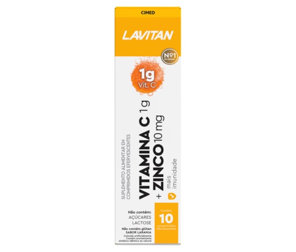 Lavitan Vitamina C Tubo com 10 comprimidos efervescentes Indicação Suplemento alimentar em comprimidos efervescentes sabor laranja, com 1g de vitamina C.