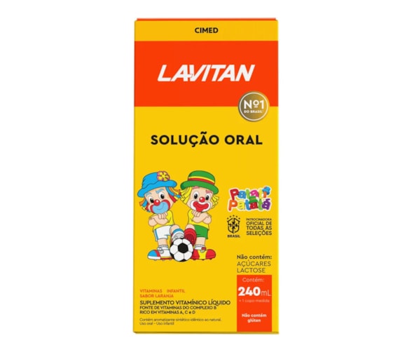 Lavitan Patati Patatá versão limitada Copa do Mundo é um suplemento vitamínico líquido, rico em vitaminas A, C e fonte de vitamina D - que complementam a nutrição da criança. As vitaminas B6, C e D auxiliam no funcionamento do sistema imune. A vitamina D auxilia na formação de ossos e dentes. Lavitan Patati Patatá é indicado para crianças de 0 a 11 meses e crianças de 1 a 10 anos. Contém 240ml no sabor Tutti Frutti e Laranja.