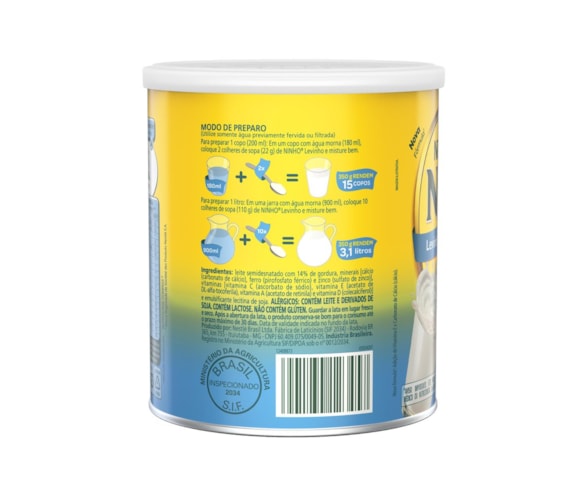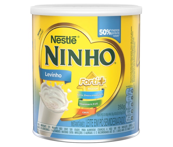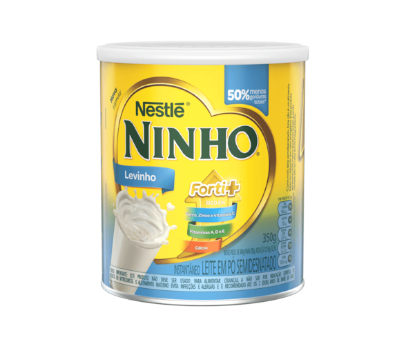 Ninho levinho é o leite semidesnatado da Nestlé rico em cálcio, ferro, zinco, vitaminas A, D, C e E essenciais para a nutrição das crianças.
