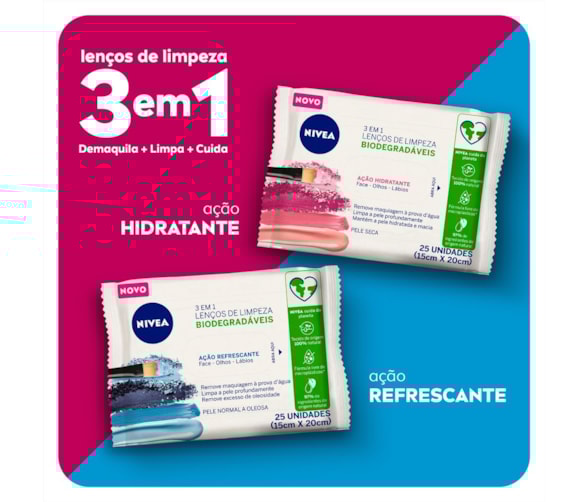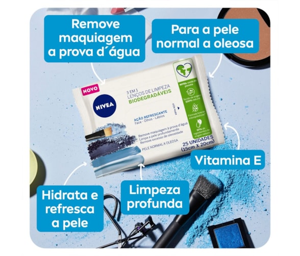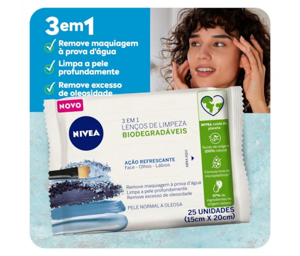 Lenço de Limpeza Nivea Demaquilante Ação Refrescante 3 em 1 é um produto essencial para a remoção eficaz da maquiagem, promovendo uma limpeza profunda e refrescante para a pele.