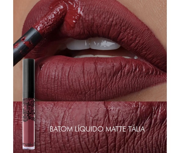 Makiê Batom Líquido Matte 4mL - Tália - Batom líquido com acabamento matte, cobertura perfeita, textura fina, acabamento fosco, aveludado incrível, longa duração e cores intensas.
