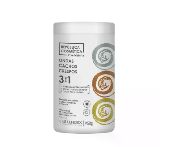 MÁSCARA 3 EM 1 - 950g Hidratar, Condicionar, e pentear. Seus ricos ingredientes com extrato de macadâmia e extrato de jojoba hidrata os fios, retém a umidade eliminando o aspecto poroso e o frizz. Experimente já! Dicas: Utilizar toda a linha de tratamento República Cosmética Vixe Mainha para um melhor resultado. Modo de uso: Com os cabelos higienizados, aplique o produto e siga de acordo com a ação desejada. Com touca plástica. - Ação Hidratação: 10 minutos de pausa, pentear e enxaguar completamente; - Ação Condicionante: Tempo de pausa 2 a 3 minutos e enxaguar completamente. - Ação Creme para pentear: Aplique o produto apenas sobre o comprimento e pontas e finalizar como desejar. Não enxaguar.
