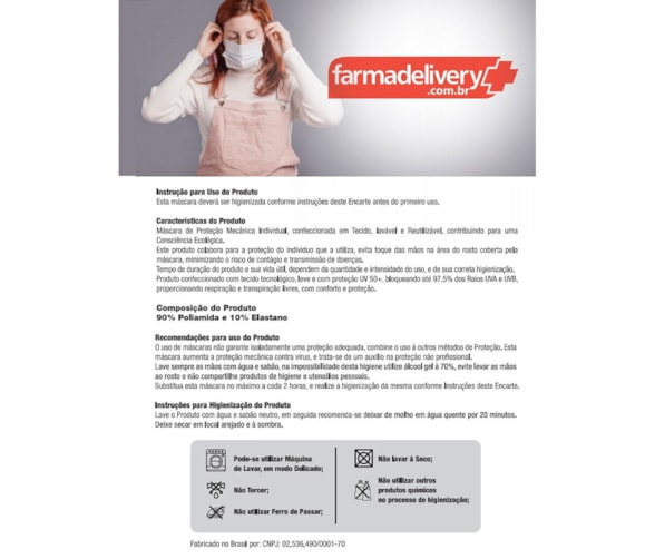 Substitua esta máscara no máximo a cada 2 horas, e realize a higienização conforme instruções.