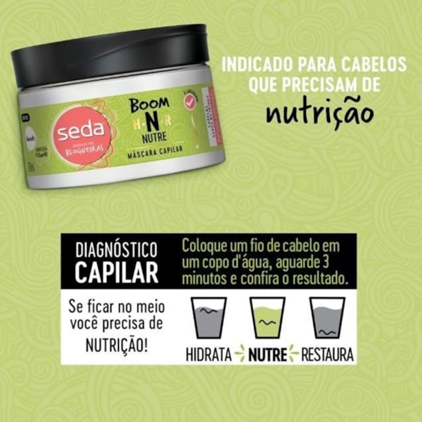 Máscara de Tratamento Seda Boom Nutre 300g - Com fórmula exclusiva, é composta de Abacate, cheio de nutrientes e rico em vitaminas, e Manteiga de Karité, conhecida por suas propriedades hidratantes e nutritivas - Para todas as curvaturas de cabelos que estejam necessitados de uma nutrição profunda, pois nutre os fios por dentro e por fora, deixando-os suaves, flexíveis e com menos frizz.