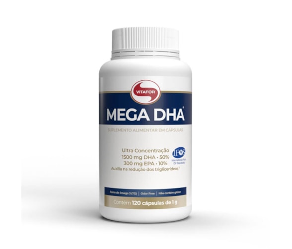 "Complemento alimentar em cápsulas a base de Ômega alta concentração 10% EPA e 50% DHA, extraído através de processo de alta tecnologia onde se isenta de impurezas e metais pesados.BenefíciosAlegação de propriedade funcional aprovada: - O consumo de ácidos graxos ômega 3 auxilia na manutenção de níveis saudáveis de triglicerídeos, desde que associado a uma alimentação equilibrada e hábitos de vida saudáveis; - Com 50% de DHA (ácido docosahexaenoico) e 10% de EPA (ácido eicosapentaenóico); - Apresentação pote com 120 e 60 cápsulas.Diferenciais - Óleo extraído de peixes de águas frias e profundas das regiões polares; - Possui concentração 300 mg de ácido eicosapentaenoico (EPA) e 1500 mg de ácido docosahexaenoico (DHA) por dose - O Programa Internacional de Padrões de Óleo de Peixe (IFOS ™) é o único programa de testes e certificação de terceiros para óleos de peixe. Definindo os padrões mais altos do mundo em pureza, potência e frescor. - Odor free"