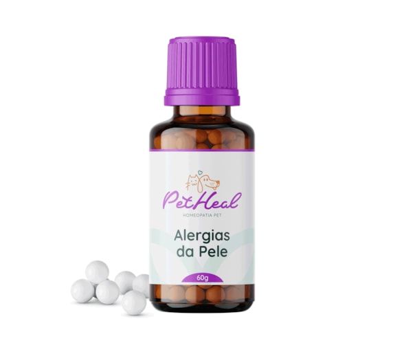 "O ?Pet Heal - Alergias de Pele 60g é um produto desenvolvido para auxiliar no tratamento de alergias de pele em pets, como psoríase, dermatites e outras irritações cutâneas, proporcionando alívio e conforto ao seu animal de estimação. Este medicamento homeopático, parte da linha Pet Heal, é formulado com ingredientes naturais que protegem contra doenças e infecções, fortalecendo a imunidade sem oferecer riscos ou efeitos colaterais.Feito para cães e gatos, este tratamento é especialmente eficaz em animais que sofrem de problemas crônicos de pele, que podem causar dor, desconforto e perda de pelos. A composição inclui ingredientes como Beladona, Sulphur, Histaminum, entre outros, todos cuidadosamente selecionados para auxiliar na cura de condições de pele com segurança e eficiência. A formulação não contém álcool, garantindo uma experiência tranquila, mesmo para os pets mais sensíveis.O produto vem na forma de glóbulos, de fácil administração. Recomenda-se dar 5 glóbulos diretamente na boca do pet, duas vezes ao dia, ou se preferir, diluir 10 glóbulos no bebedouro a cada troca. Para portes pequenos, indica-se administrar 3 glóbulos duas vezes ao dia, ou 6 glóbulos no bebedouro. Os glóbulos são feitos de sacarose e devem ser usados com cautela por animais diabéticos, sempre sob orientação veterinária.Mantenha o produto em local seco e ventilado, protegido de luz direta, umidade e fontes de radiação. É importante não utilizar o medicamento após o vencimento e seguir o modo de uso corretamente para garantir os melhores resultados. Este frasco de 60g proporciona um tratamento eficaz e confiável, promovendo uma melhora significativa na qualidade de vida dos seus amigos de quatro patas. Com Pet Heal, cuide do bem-estar do seu pet com segurança e carinho, optando por uma solução natural e de confiança para os desafios de saúde da pele que ele possa enfrentar."