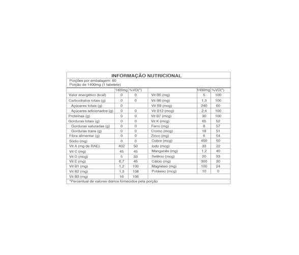 SUGESTÃO DE CONSUMO: Consumir 1 (um) tablete ao dia, ou conforme recomendação de nutricionista e/ou médico.