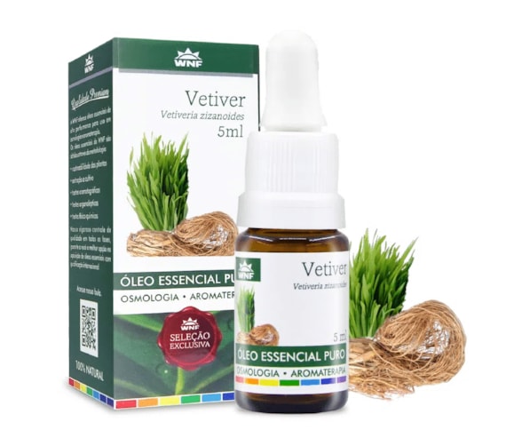 "O Óleo Essencial de Vetiver é obtido a partir das raízes da planta, é um óleo resinoso, denso e de coloração marrom escuro, por isso é vendido em conta gotas.Seu aroma é terroso, lenhoso, denso e profundo, suas notas baixas relaxam a estafa nervosa do ambiente, fortalece a conexão com os objetivos.O óleo essencial de vetiver é constituído de mais de 200 componentes o que gera um aroma intenso com notas terra e madeira.Uso no corpo: o Óleo Essencial de Vetiver Wnf proporciona aumento da elasticidade e o tônus, indicado para peles secas, dermatite, pele sensível, psoríase, tratamento de rosáceas e alguns tipos de manchas. Favorece a circulação venosa.Uso no ambiente: Este óleo complexo, extraído das raízes, tem um efeito aterrador, ajuda a trazer a pessoa para mundo real e prático para poder realizar seus sonhos. Age tanto emocionalmente quanto mentalmente para relaxar e acalmar, conhecido no oriente como “óleo da tranquilidade”, é o óleo da elevação e da inspiração. É um óleo mais indicado para adultos. Traz conforto, calma, relaxamento, introspecção, força e autoconfiança para enfrentar situações emocionais difíceis. É aterrador, equilibrante e reconfortante.AromaLenhosoDiferenciaisNão testado em animais, vegano."