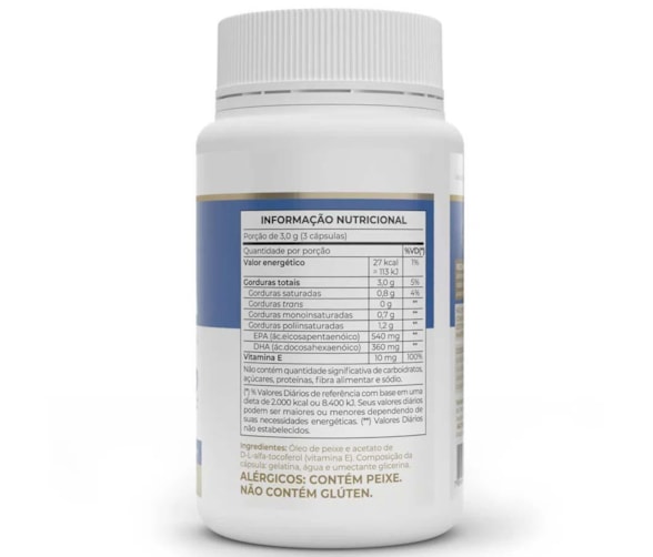 ÔMEGA 3 1000MG (18 EPA/12 DHA) é um produto à base de óleo de peixe extraído de águas frias e profundas das regiões polares, sendo rico em em ácidos graxos de cadeia longa da série ômega 3. Seus constituintes são: o ácido eicosapentaenoico (EPA) e o ácido docosahexaenoico (DHA), sendo considerados ácidos graxos essenciais. Também possui vitamina E e sua composição.O ÔMEGA 3 atua na regulação do metabolismo lipídico, melhora a circulação sanguínea previnindo doenças cardiovasculares, possui ação anti-inflamatória e auxilia na concentração e memória.